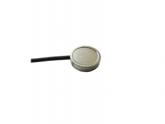 Der KM10a ist ein Membran-Kraftsensor in Ultraminiatur-Ausführung. Diese Kraftmessdose dient der Kraftmessung in Druckrichtung. Ähnlich wie beim KM10 erfolgt die Krafteinleitung über die Kalotte (Durchmesser 3mm, R10) im Zentrum des Sensors. Bei dem Sensor KM10a ist die Aufstandsfläche geschliffen, um Linearität und Reproduzierbarkeit in den Grenzen von 1% vom Istwert zu erzielen. Für eine geringere Temperaturdrift im Vergleich zum Kraftsensor KM10 sorgt außerdem die im Kabel eingebaute Abgleichplatine (7mm x 75mm x 4mm). Die Abgleichplatine enthält temperaturabhängige Widerstände zum Abgleich der temperaturbedingten Drift 0,01%/K. Die Abgleichplatine sollte daher etwa den gleichen und enthält Abgleichelemente für den temperaturbedingten Drift.