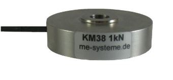Der Miniatur-Kraftsensor KM38 eignet sich wegen seiner flachen Bauform und seiner Durchgangsbohrung hervorragend zur Messung der Vorspannkraft von Schrauben. Die Durchgangsbohrung 7mm eignet sich aber auch zum Einsetzen einer Krafteinleitung. Mit einer Kalotte wird die zentrische und querkraftfreieKrafteinleitung realisiert. Durch Einsetzen von Halbschalen oder Prismen wird eine Anpassung dieser Kraftsensoren für die Messung von Walzenkräften erzielt. Die drei Gewinde M2,5 an der Unterseite erlauben die Befestigung des Sensors.