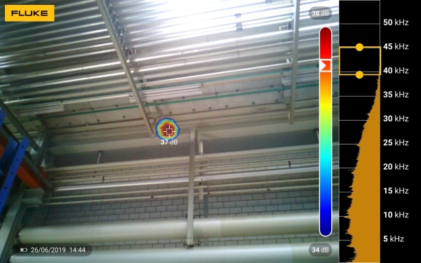 Die Schallkamera funktioniert auch in lärmiger Umgebung da diese mit intelligenten Filtern die Umgebungsgeräusche ausfiltert und nur die relevanten durch die Leckagen erzeugten Schallwellen im Ultraschallbereich anzeigt.